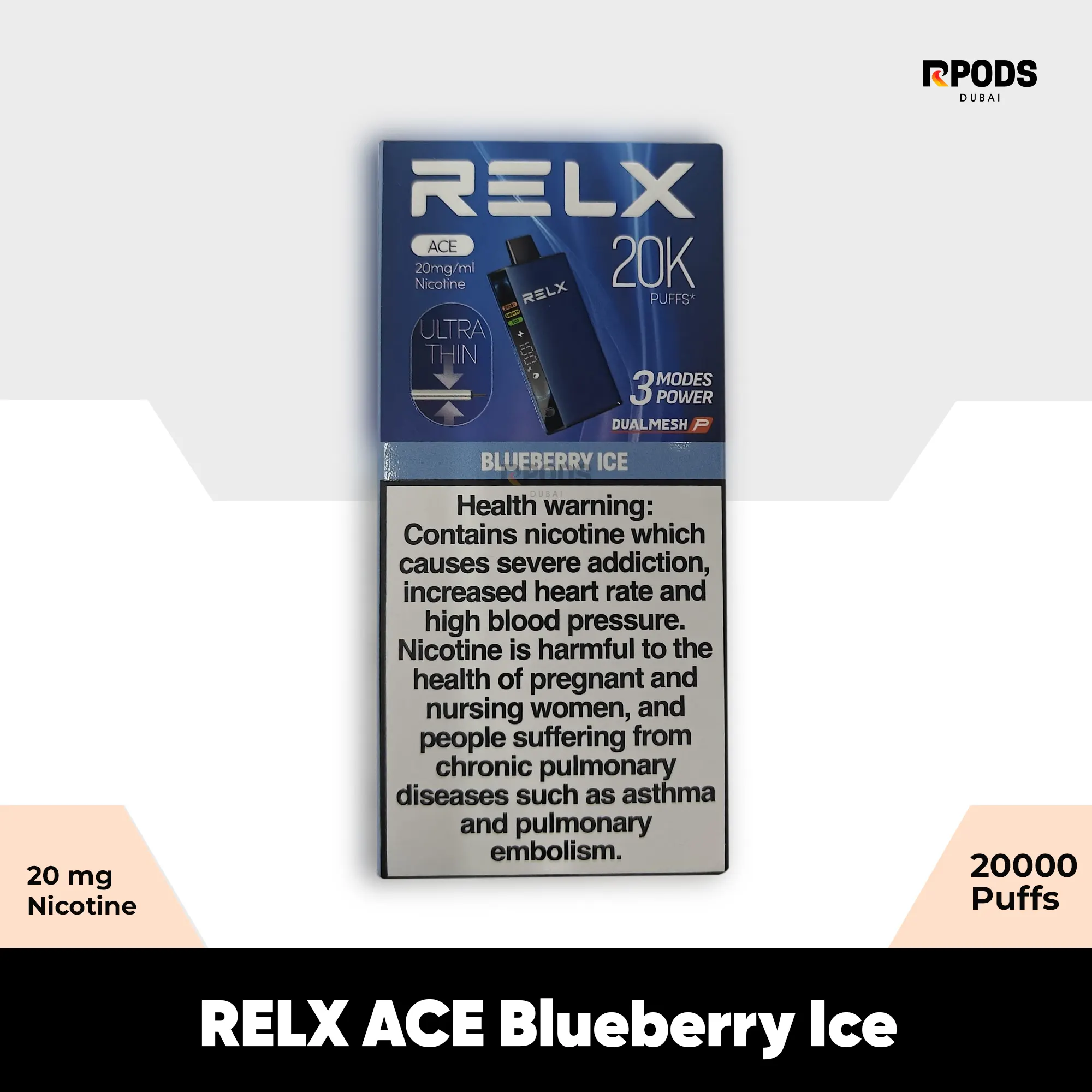 Get the RELX ACE Blueberry Ice, a high-performance vape device for those who want both endurance and flavor. Whether you’re driving through Dubai’s highways or chilling in Abu Dhabi, this device gives you up to 20,000 puffs in Eco mode and a crisp blueberry ice finish. With a slim design and 3 power modes, Relx Ace Device is perfect for UAE vapers who want a no-fuss experience.